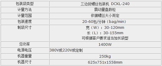 螺丝包装颗数随意调节、装包袋数可自行控制,可设定需要包数,达到数量时自动停机。自动显示包装数量,可方便的统计出机器的工作量。